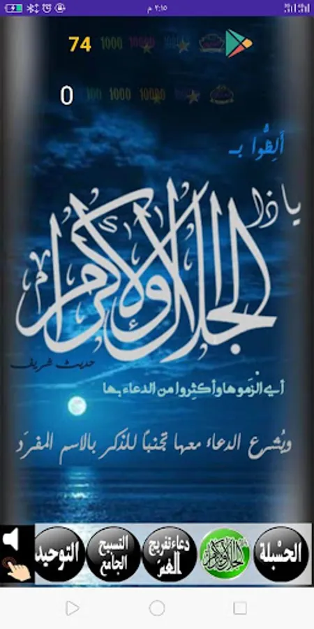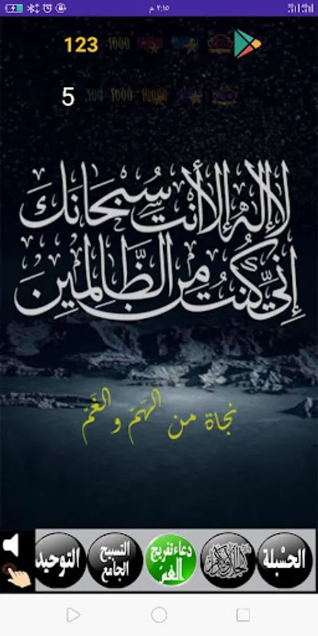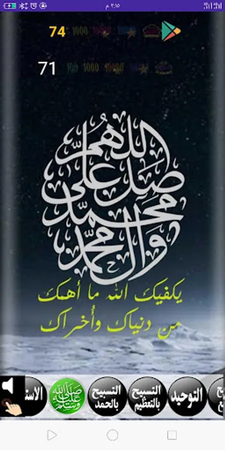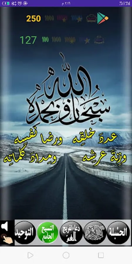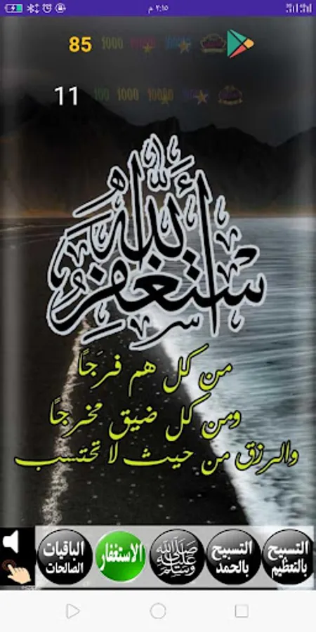 Click on the Tasbeeh to start counting until you reach more than a million praises, and you can zero the number by clicking on the number, and turn on or off the pressure sound and the tasbeeh sound from the two sound signs in the lower left of the application.