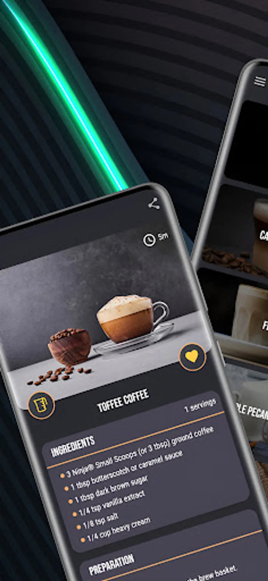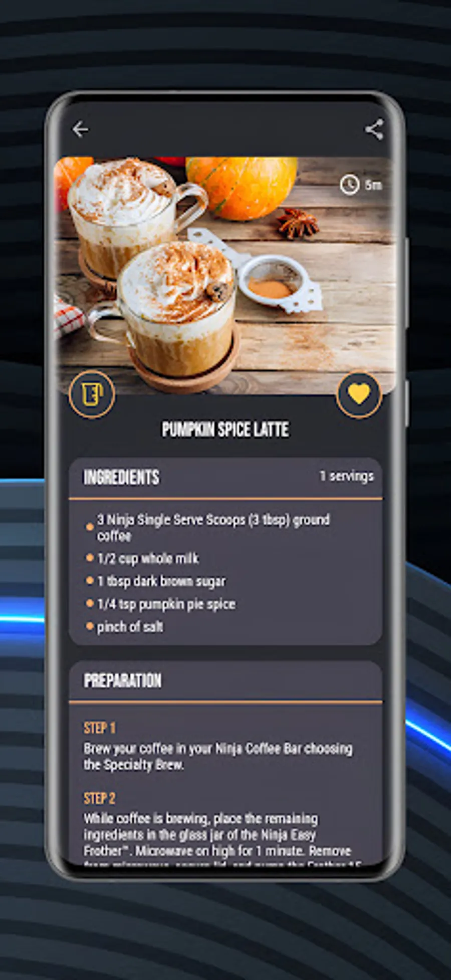 In our Ninja coffee maker recipes app you will find Ninja coffee recipes iced, such as iced macchiato and iced mocha, as well as hot coffee classics such as mocha latte and cappuccino, but also some fun exotic options such as Mexican spiced coffee, pumpkin spice latte, toffee coffee etc.
