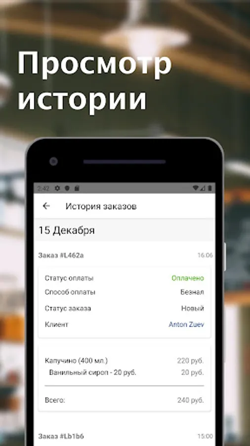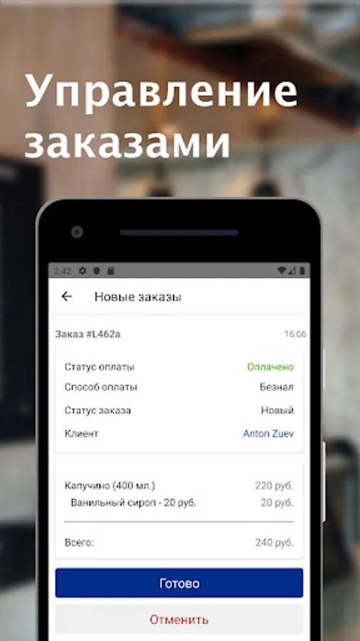 Coffee Tech is a barista workplace. All orders that customers of your coffee shop make using the Telegram bot are in the application.