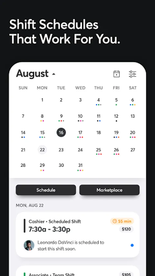 Can’t make it to work? No problem! Post your shift on the Shift Marketplace and find coverage from another team member. Once a manager approves, you are off the hook!