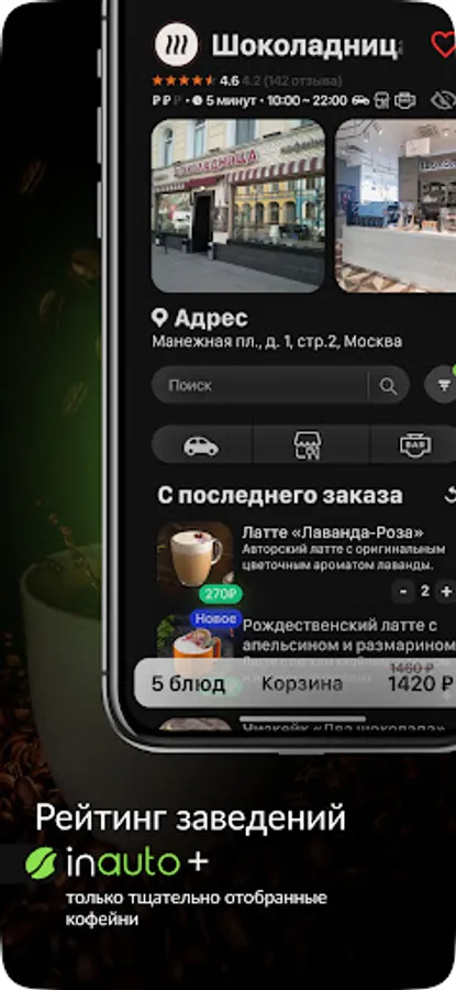 The application allows you to order coffee and other goods from cafes connected to the network.