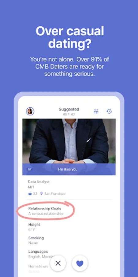 Do they want kids? What’s their relationship goal? Every CMB date should be relationship-material, so we’ve made sure all the important details are upfront.