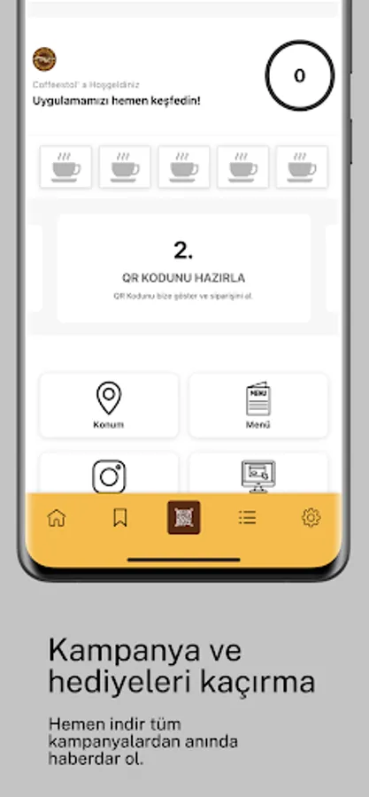 Be aware of the campaigns with our Coffeestol mobile application! Don't miss the free coffee opportunity! Sign up now, show the QR code to the barista in every order and earn points. 1 coffee for every 5 points!
