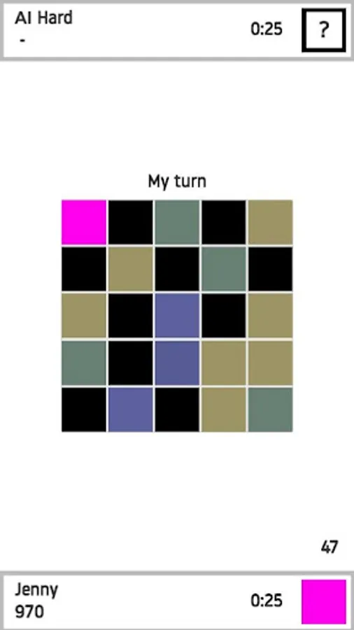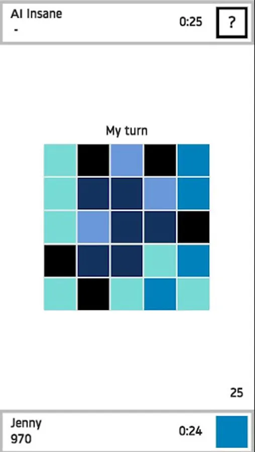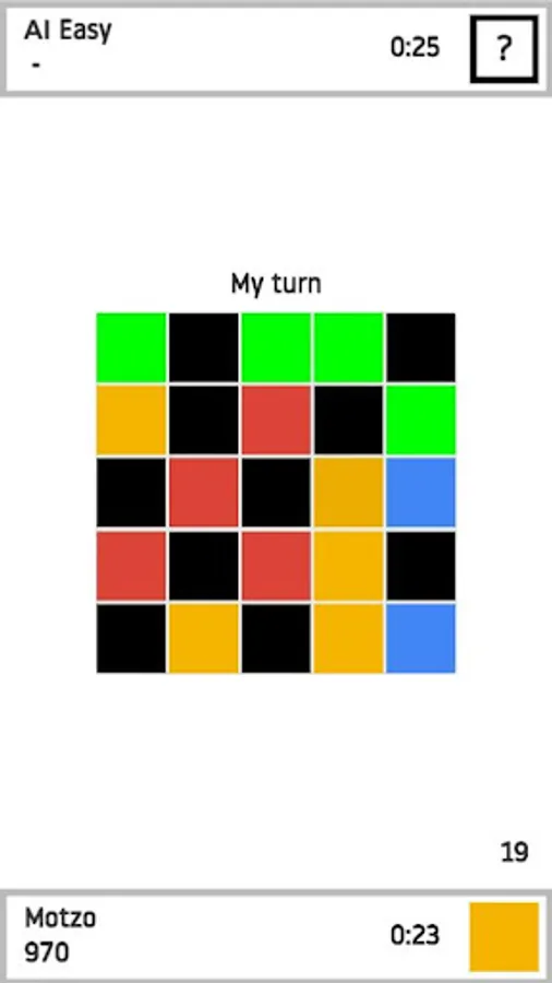 A combination of skill, observation and strategy. You can play versus other players of 3 different levels of AI.