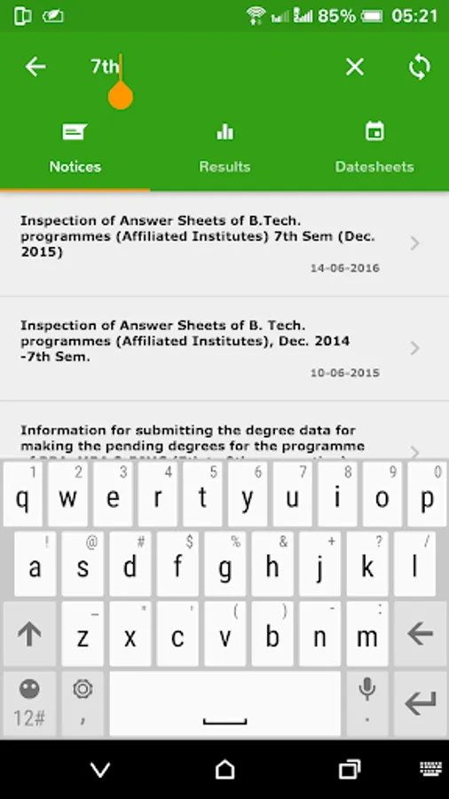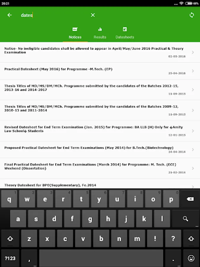 1. You can easily filter through the list of Results, Datesheets and Notices.