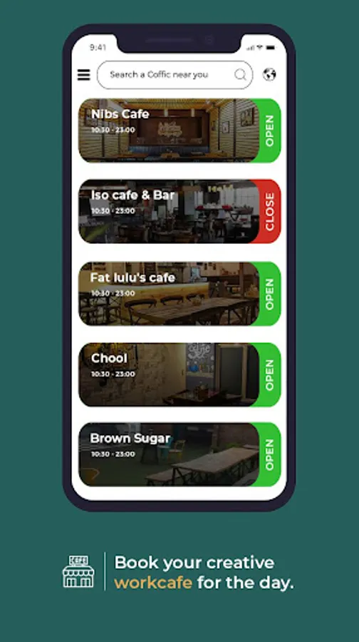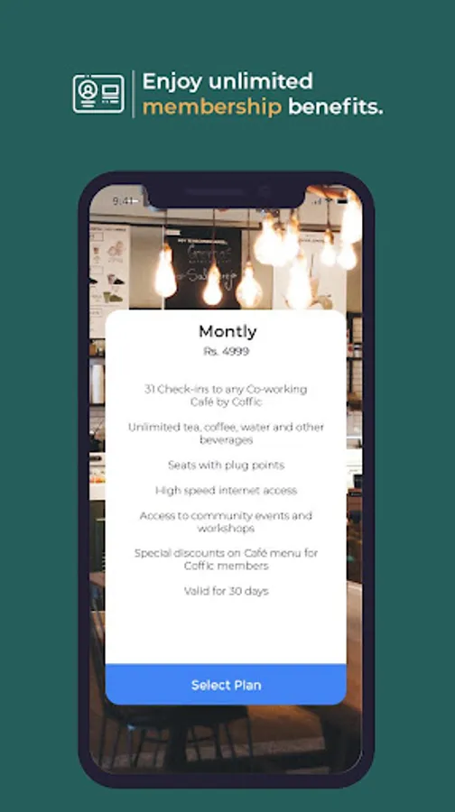 Coffic gives you access to various inspiring and creative Co-working cafes for your everyday work needs. Sign in the application and select a subscription plan that best suits your work lifestyle. You can choose from three alternative plans; Daily, Weekly & Monthly.