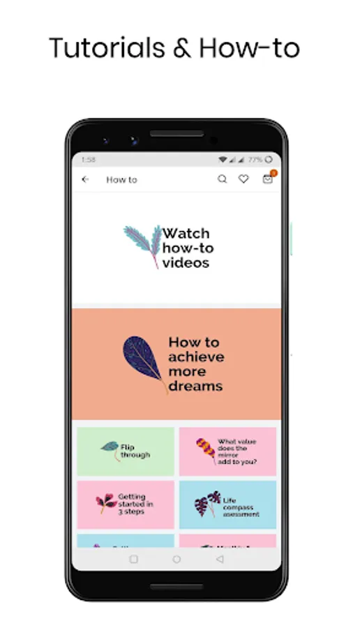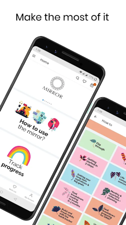 The 'My mirror' app allows you to explore what the Mirror planner helps you achieve, view tutorial videos to make the most of the planner and also track your monthly progress!