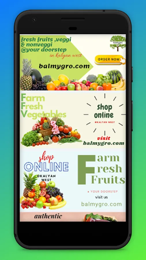 balmygro is online shopping application. we provids fresh vegetables & fruits directly form farmer to end customer.
