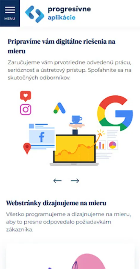 We create applications, websites, e-shops based on content management system in Trenčín, which provides the customer with a hand over his website or application thanks to an intuitive interface and the ability to edit any part of the site without knowledge of the programming language. We have been successfully creating websites for 7 years and we have over 180 projects. When developing the website we pay attention to the quality, security and graphic design of the project. Design as well as the whole project is tailor-made according to the wishes of the customer and so no limits are placed. We are adapting the site to mobile devices and tablets to maximize the target audience.