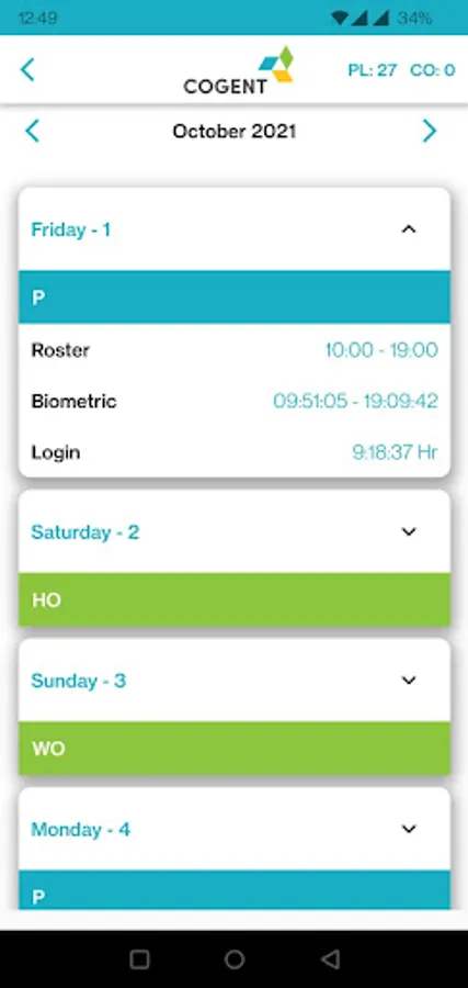 - Apply, View and Approve different types of Exception, Leave, and Downtime i.e. Biometric Issue, BackDated Leave, Shift Change, Roster Change, Working on Leave, Working on WeekOff.