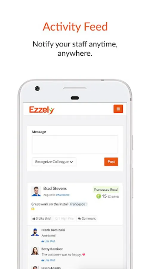 Ezzely has numerous features to increase employee engagement and stimulate productivity.