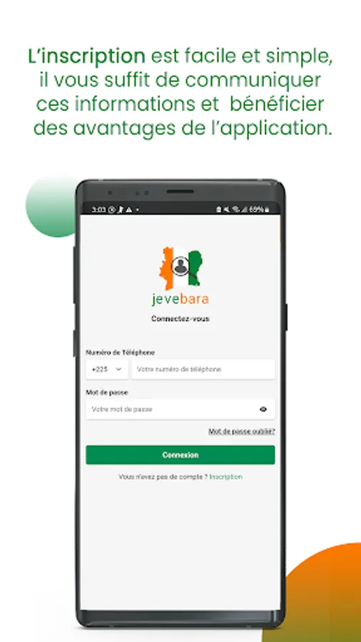 Jevebara is a revolutionary application that solves the problems of several Ivorians thanks to its functionality and its very high attention to detail.