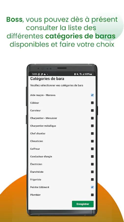 Apply for a bara: Any user of the application has the possibility to apply for a job that corresponds to his Bara category.