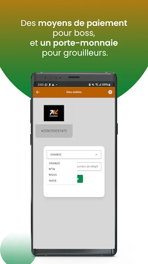 Receive payment: The Jevebara application allows all Grouilleurs to withdraw their winnings via Orange Money, Mobile money or Wave money.
