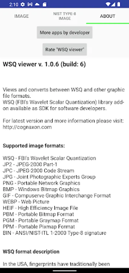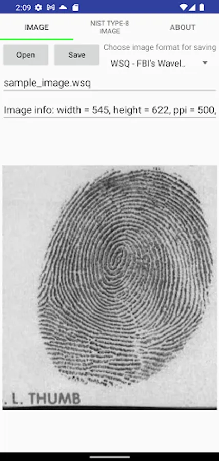 Opens WSQ (FBI's Wavelet Scalar Quantization) and other image file formats.