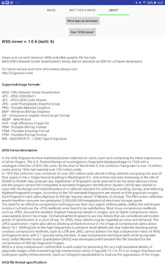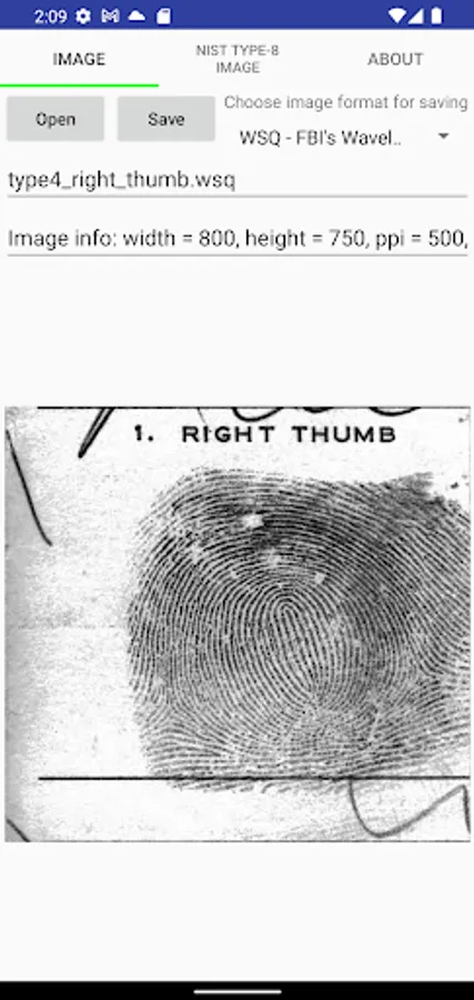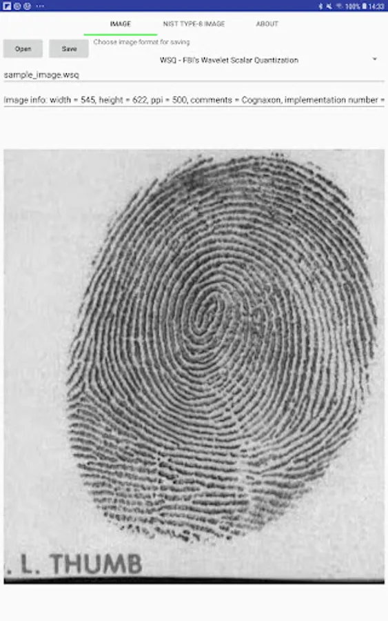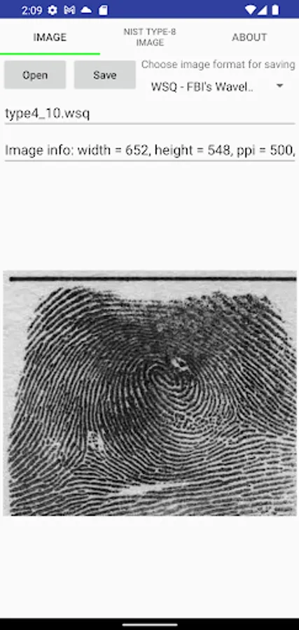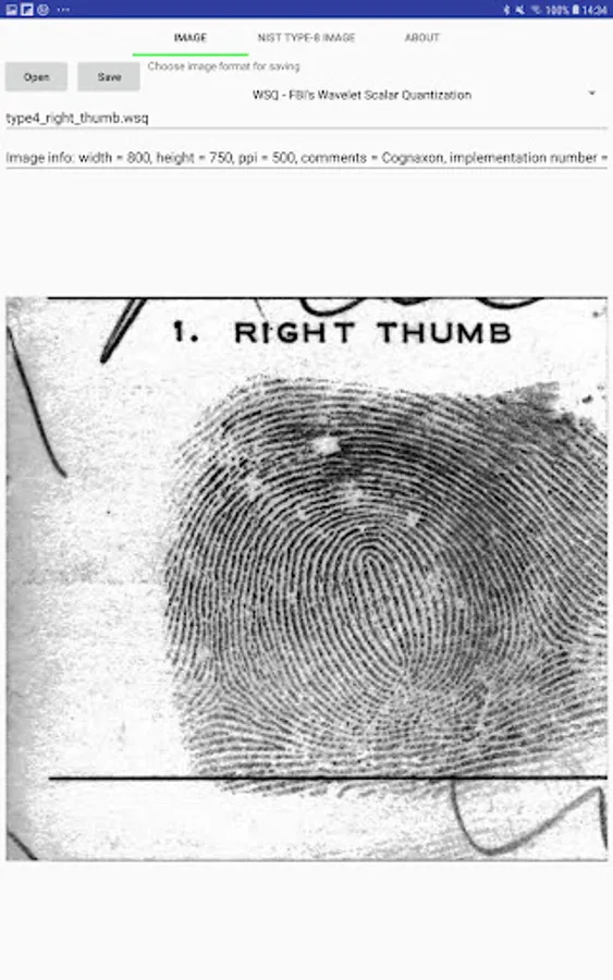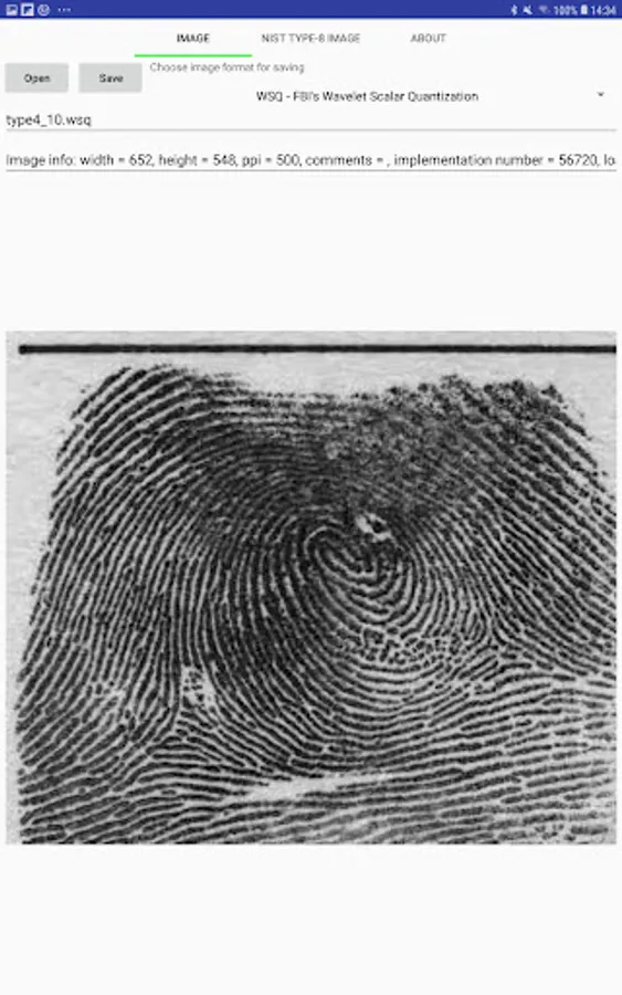 Application: The standard file format used by the FBI for storage and interchange of grayscale fingerprint images