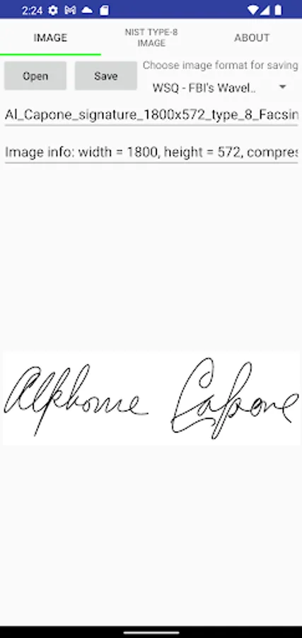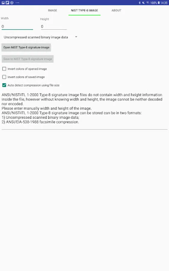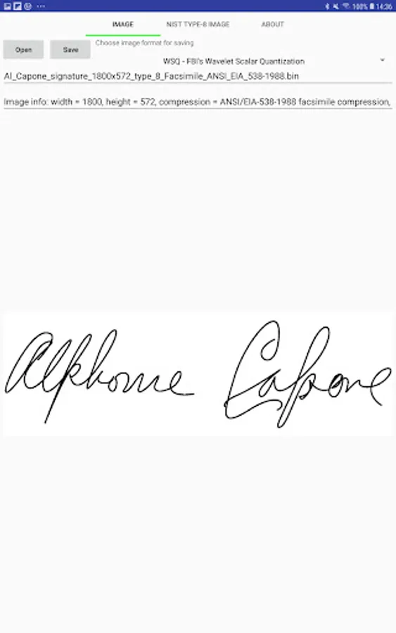 BIN - ANSI/NIST-ITL 1-2000 Type-8 signature (ANSI/EIA-538-1988 facsimile compression)