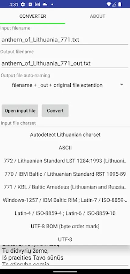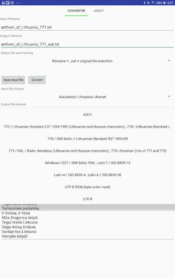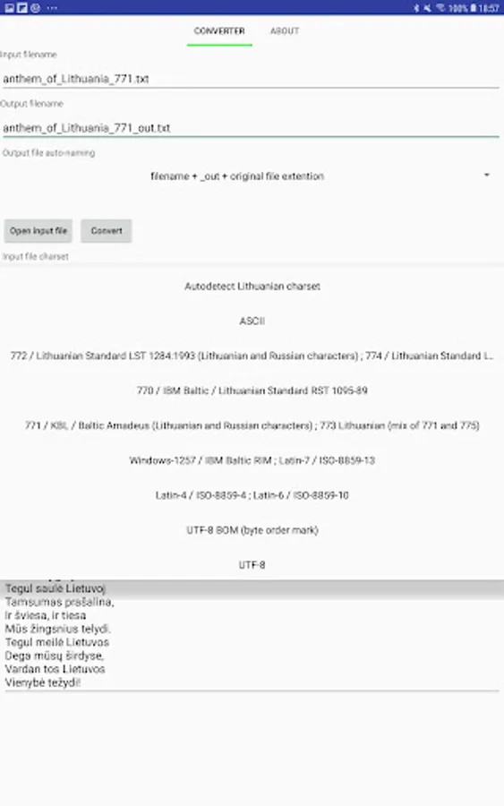 “Lithuanian charset converter” converts between legacy character encodings and modern UTF-8.