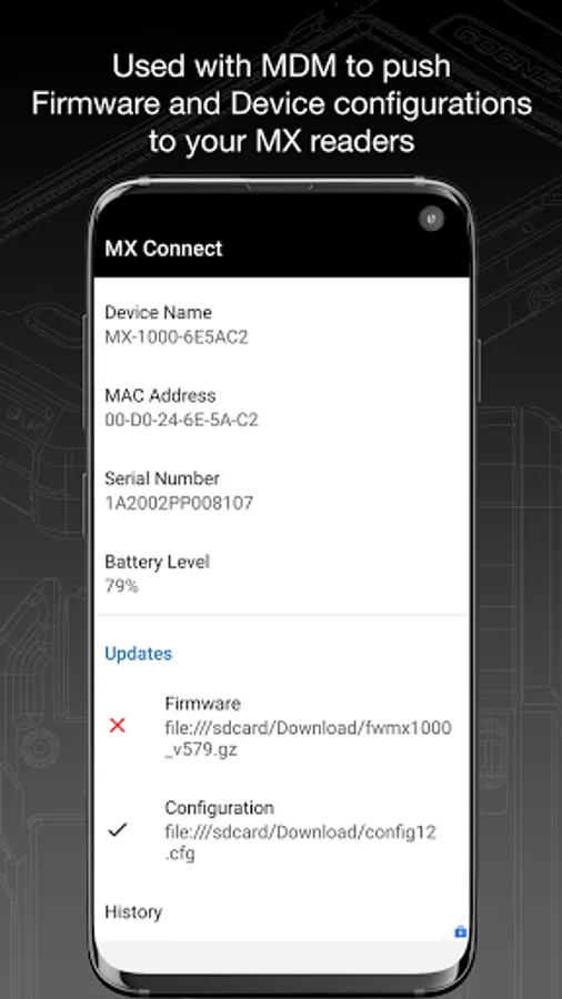 MX Connect provides the interface between an Android phone and a Cognex MX Mobile Terminal. MX Connect manages the USB data connection, provides an Intent interface for communication and management of the MX device. MX Connect is also available for Android Enterprise to manage the MX Mobile Terminal via a Mobile Device Management platform that supports AppConfig.