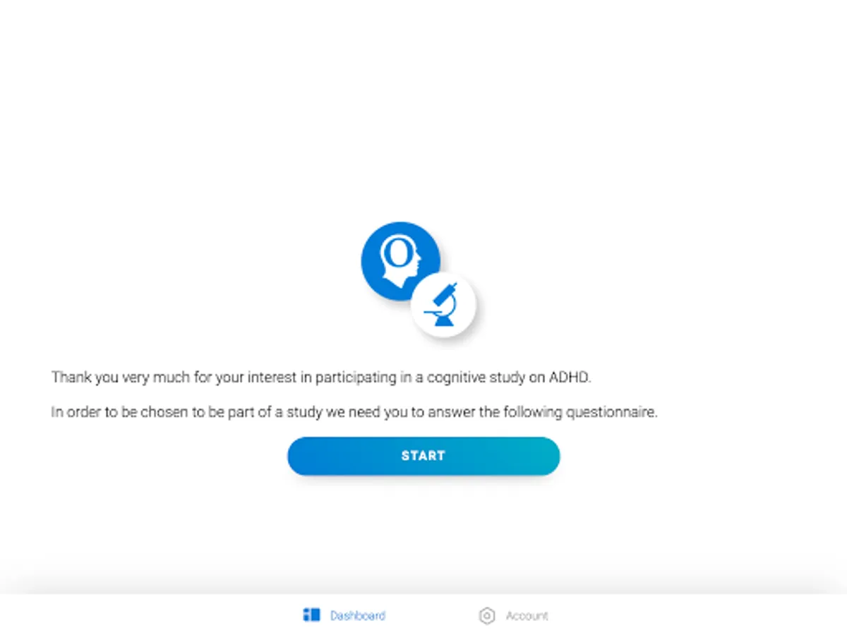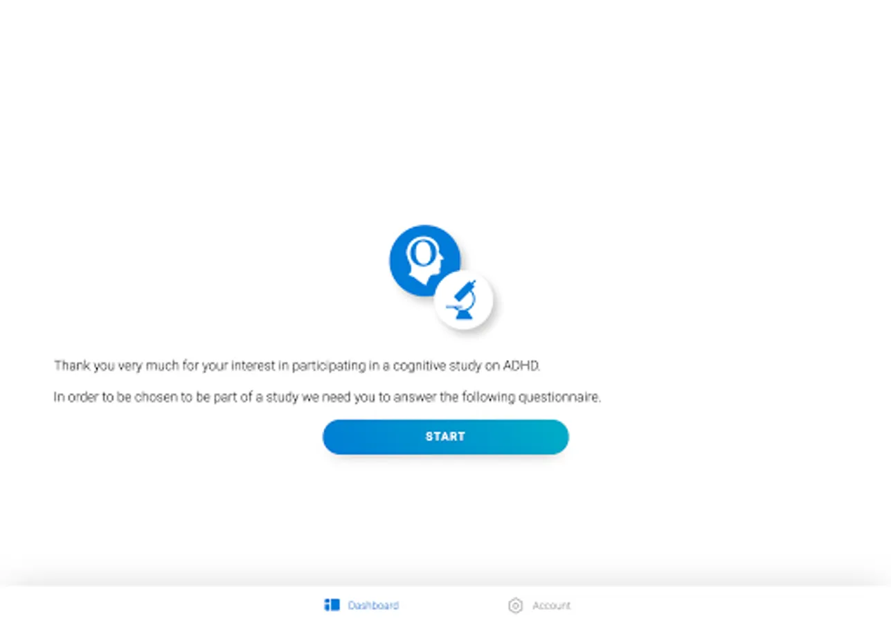 This app is designed for people who wish to participate in scientific studies related to ADHD.
