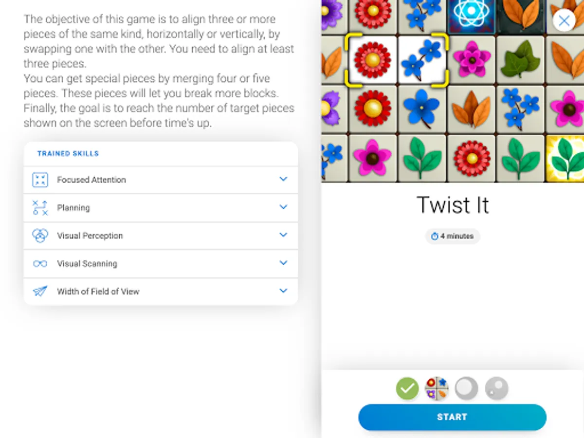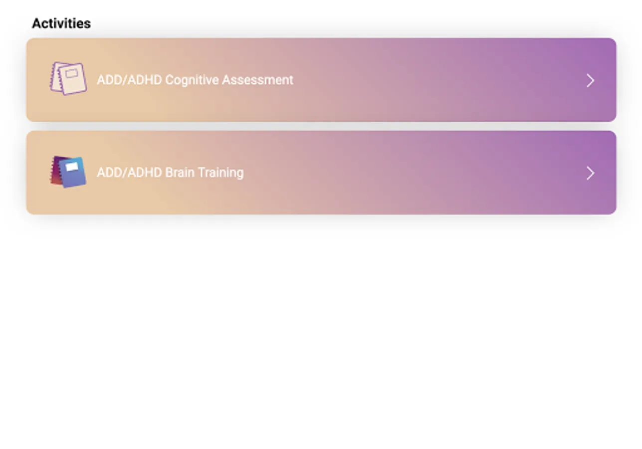 People living with ADHD can be affected by various alterations in their cognitive abilities. This app is used to investigate the following aspects related to this disorder: Focused Attention, Inhibition, Monitoring, Short-Term Visual Memory, Working Memory, Planning, and Hand-Eye Coordination.