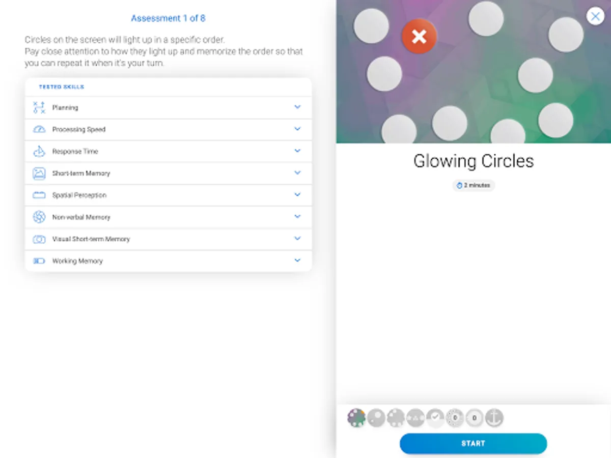 People living with Chemo Brain can be affected by various alterations in their cognitive abilities. This app is used to investigate the following aspects related to this disorder: Focused Attention, Spatial Perception, Short-Term Memory, Cognitive Flexibility, Processing Speed, and Response Time.