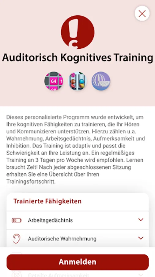 Welcome to ACT from Hanston - powered by CogniFit. ACT is an auditory cognitive training program that focuses on the cognitive skills that aid your hearing and communication. The program contains more than 15 games that train your auditory perception, working memory, attention and inhibition. The training is personalized and adapts the level of difficulty to your individual performance. You will receive regular feedback on your progress.