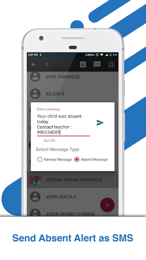 Apart from absent alert, reminders about important events, exams etc. can also be sent.