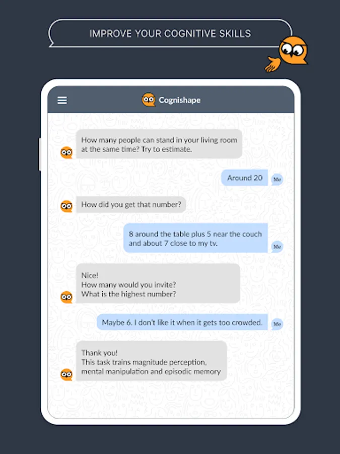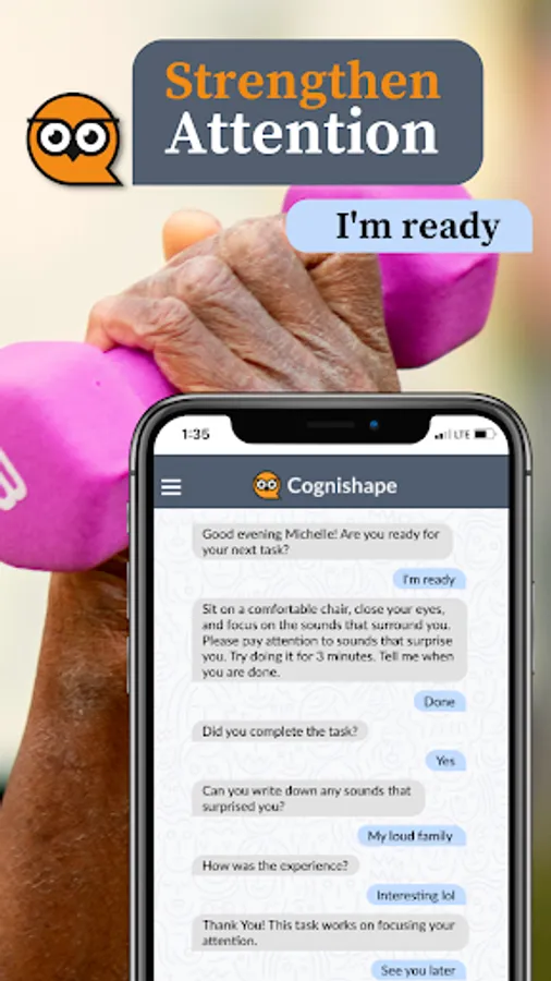 *The Cognishape chatbot coaches you through your daily tasks and guides you through your overall progress