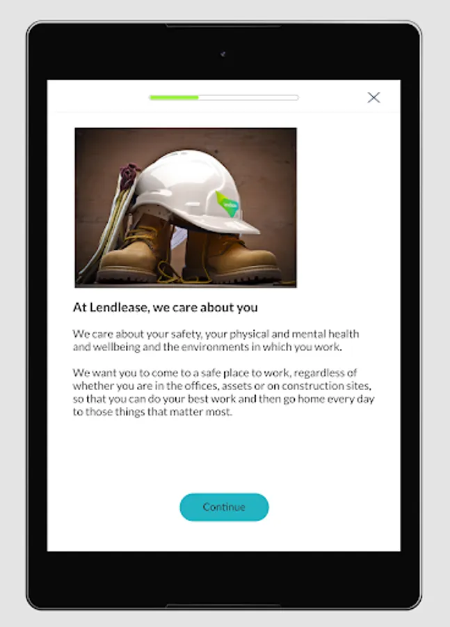 An app for Partners & Supply Chain working with Lendlease globally that provides learning and information about working with a Lendlease operation in line with our minimum requirements. It is Safety and Wellbeing focused.