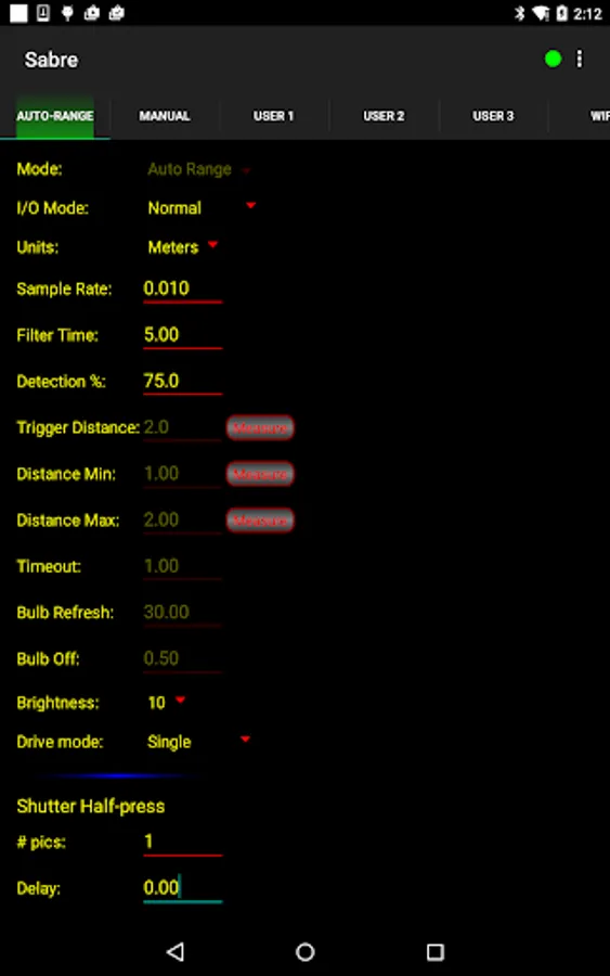 This app allows you to adjust all the settings for your Cognisys Sabre photography sensor, including: