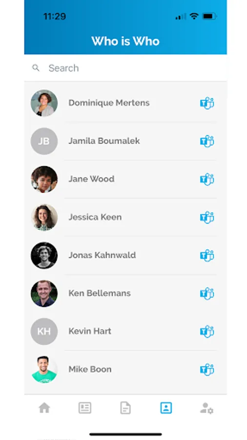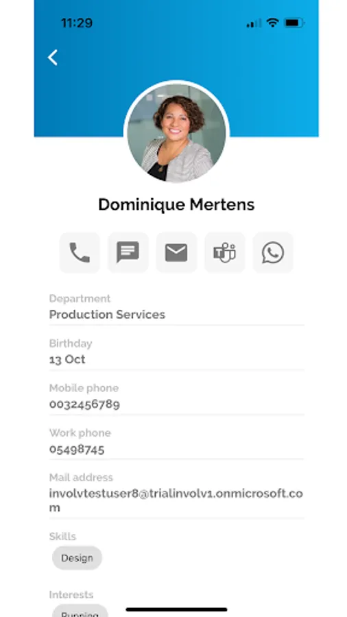 Connect to an employee through Teams, WhatsApp, SMS or call in just one touch.