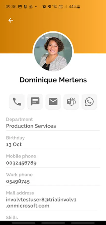 Connect to an employee through Teams, WhatsApp, SMS or call in just one touch.