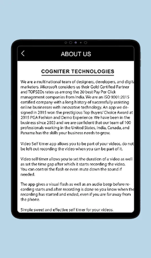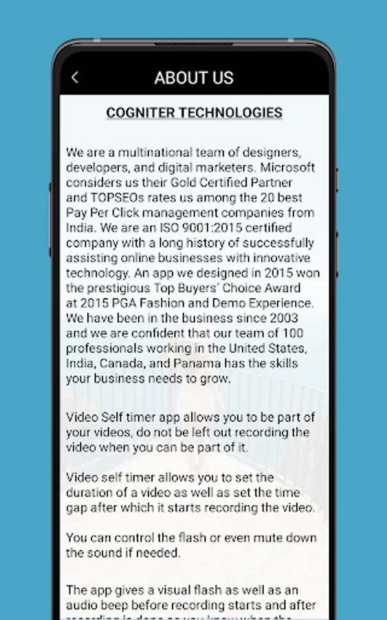 Video Self Timer is built to provide users the ability to record their video by setting their own timer.