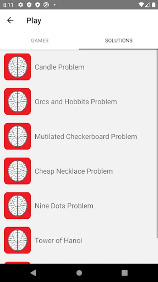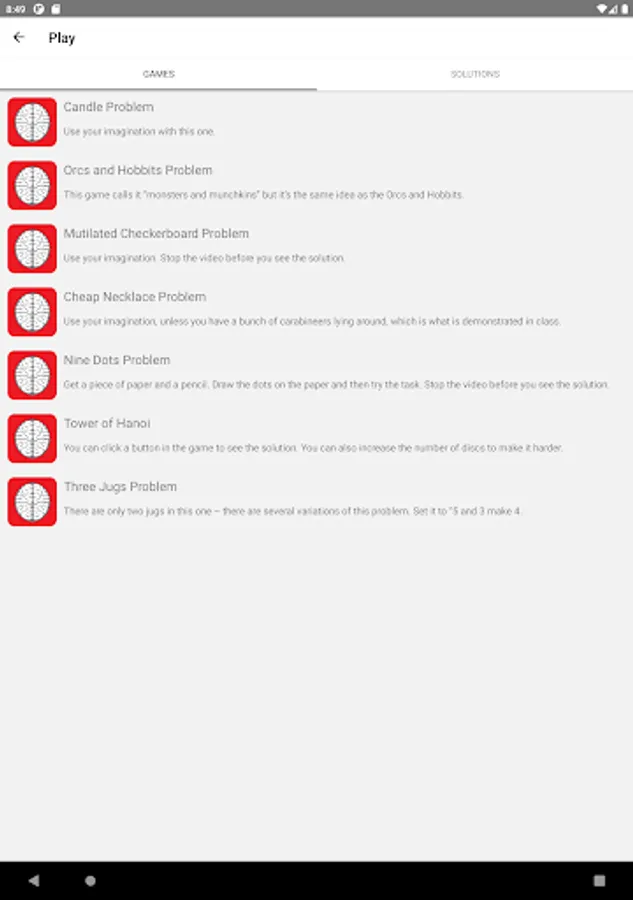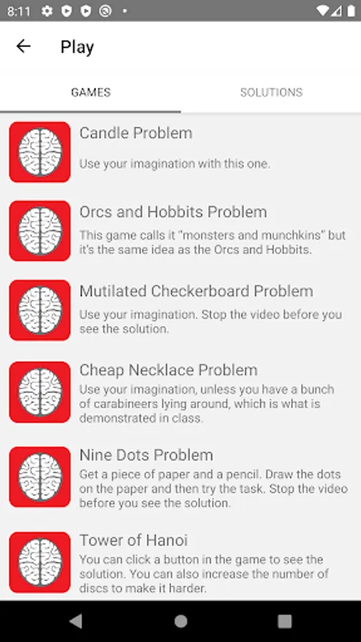 This is a great app to allow you to easily access online cognitive games and the solutions for the games.
