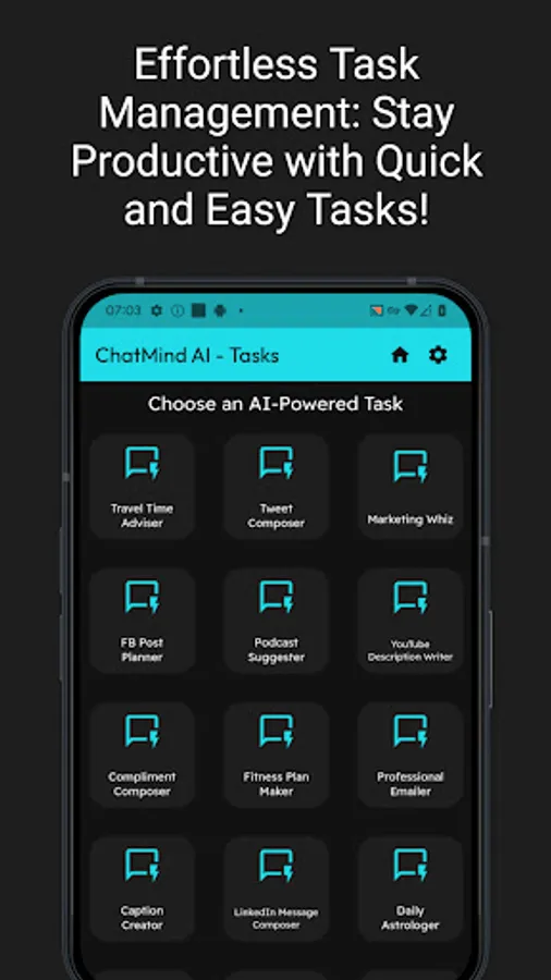 With endless dialogue, limitless inspiration, and task automation at your fingertips, ChatMind liberates your potential through the power of artificial intelligence. Now you can chat about any topic, write with creative confidence, and check tasks off your list faster than ever before. The future is here - embrace it with your personal AI sidekick, ChatMind AI.