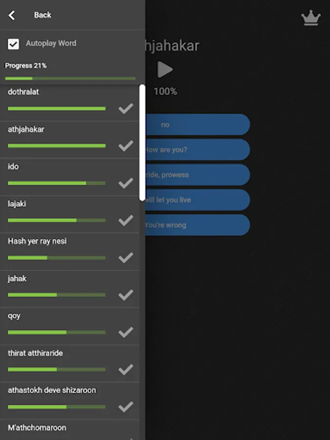 For a complete list of the words please look at this google doc, you are welcome to comment if you have suggestion or fixes, some of the words are available only in the Pro version.