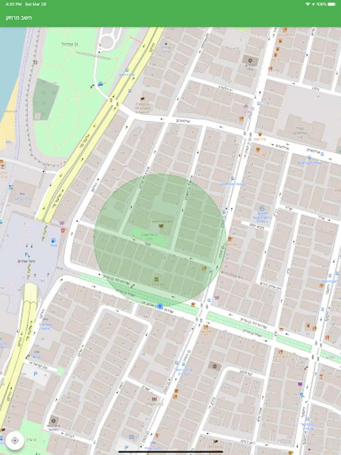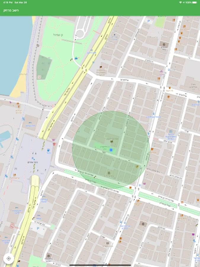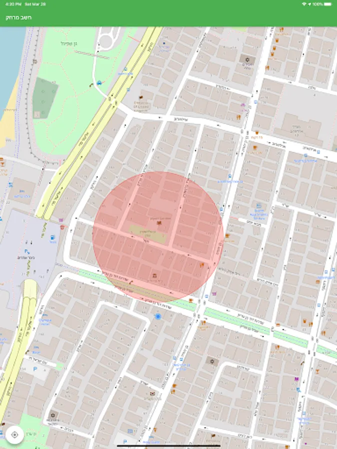 The app calculates a 100 meter radius around the home, showing your location relative to the radius.