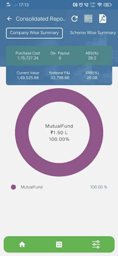 Cognizance Financials app allows clients to view their investments in Mutual Funds, Fixed Deposit and Insurance at the click of a button. It also provides a consolidated investment report.