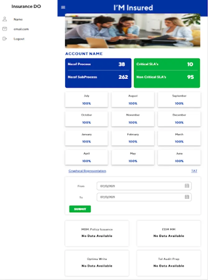 The Insurance DO Dashboard is a hybrid mobile application created for Insurance vertical clients reflecting the metrics on SLA, performances of their process handled by Cognizant team’s .The mobile application helps the team to enable real time monitoring of SLA and performance on the go.