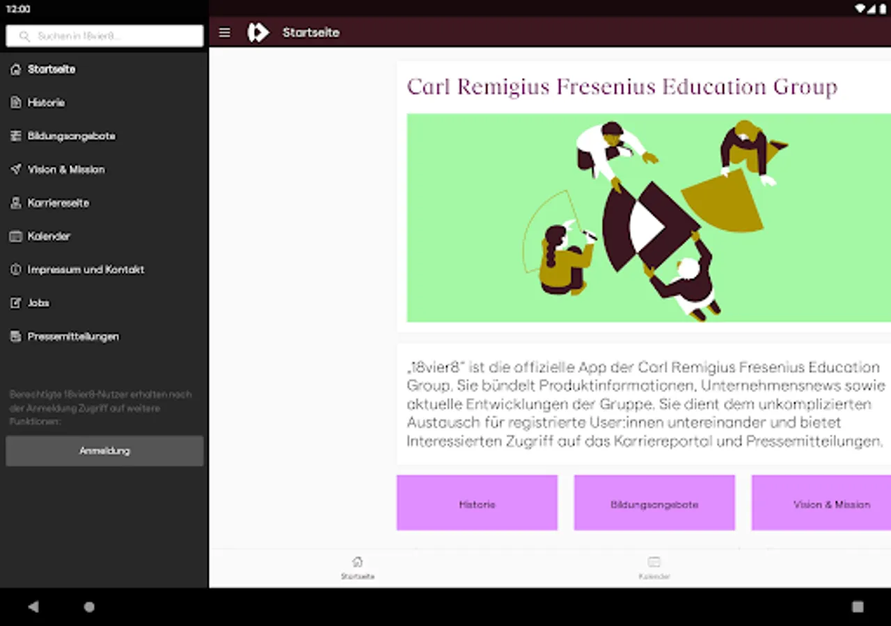 "18vier8" is the official app of the Carl Remigius Fresenius Education Group.