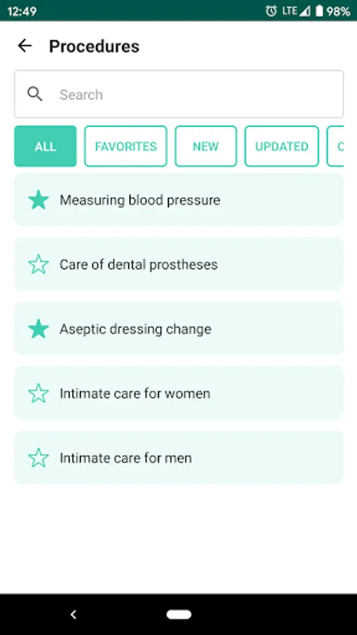 Procedures include step-by-step guidelines for following protocols. Procedures can be controlled through voice commands via Bluetooth headset, ensuring that the user experience is entirely handsfree, as well as manually. Users will see procedures specific to their institutions and all publically available procedures. Procedures are classified into categories. Users can mark procedures as favourites and see their most used procedures.