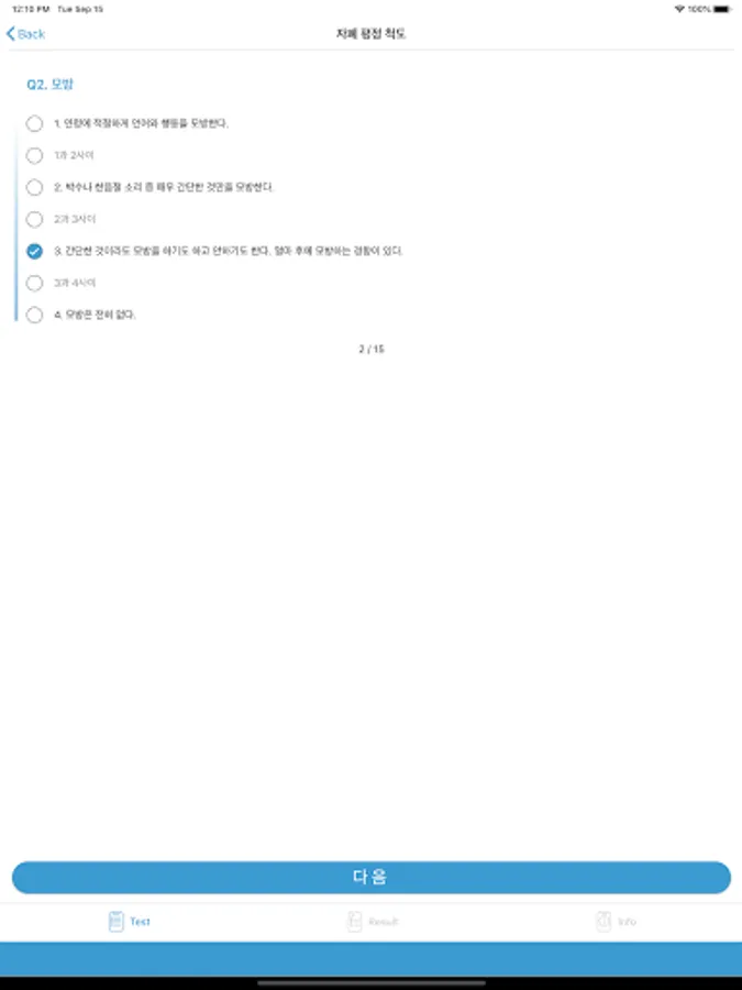 - Each of the 15 items is rated on a scale of 1 to 4 points.