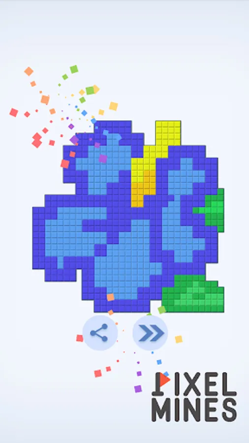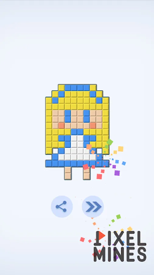 The objective of the game is to clear a map containing hidden “mines” or bombs without detonating any of them, with help from clues about the number or neighboring mines in each field. The game is played by revealing squares of the grid by touching each square. If a square containing a mine is revealed, the player loses the game. If no mine is revealed, a digit is instead displayed in the square, indicating how many adjacent squares contains mines. If no mines are adjacent, the square becomes blank, and all adjacent squares will be recursively revealed. The player uses this information to deduce the contents of other squares, and may either safely reveal each square or mark the square as containing a mine. After clearing all the mines, colored pixel images would be revealed. Play simple mine game and collect pixel images. You would love it!
