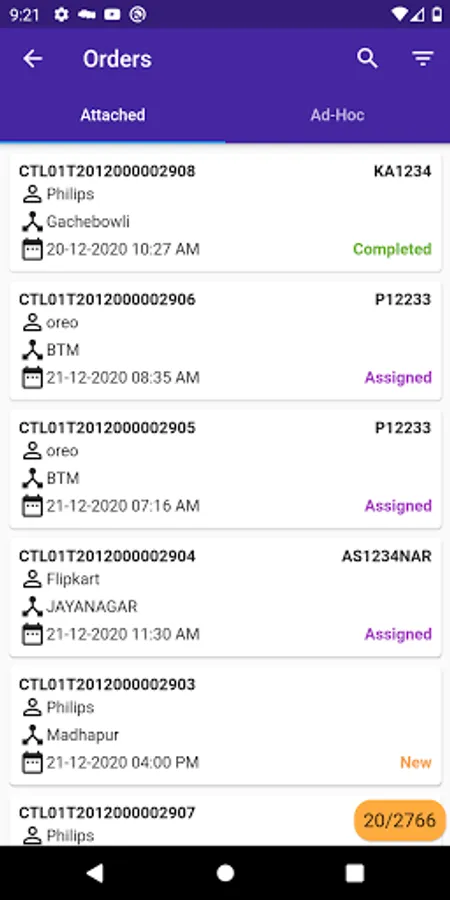 4) App has option Vehicle List, Driver List, and Partner List to get the list of the registered vehicle under this Field Officer.