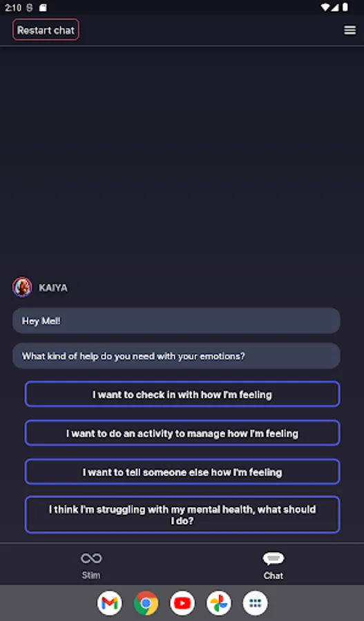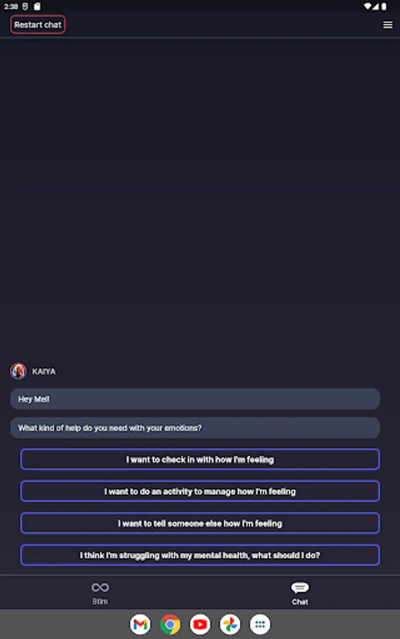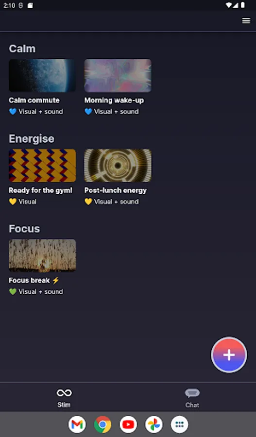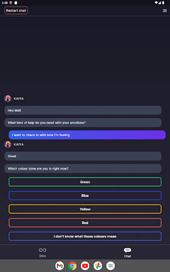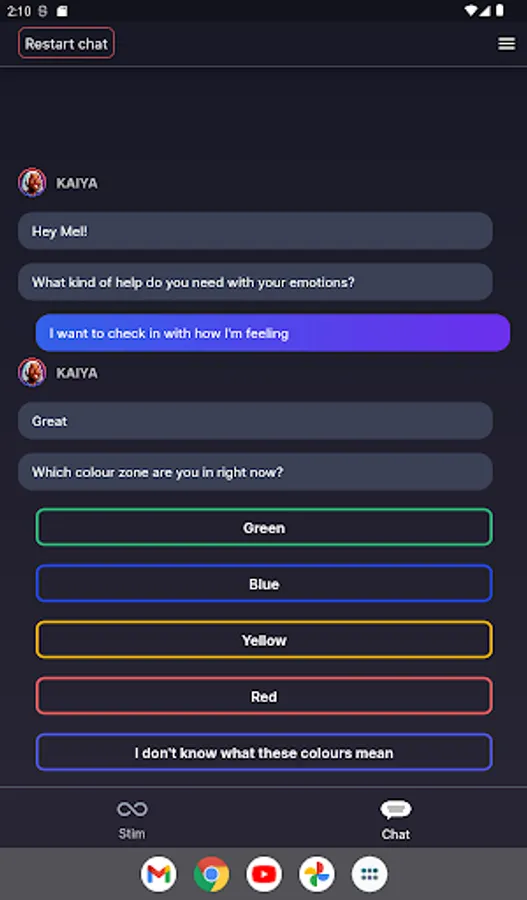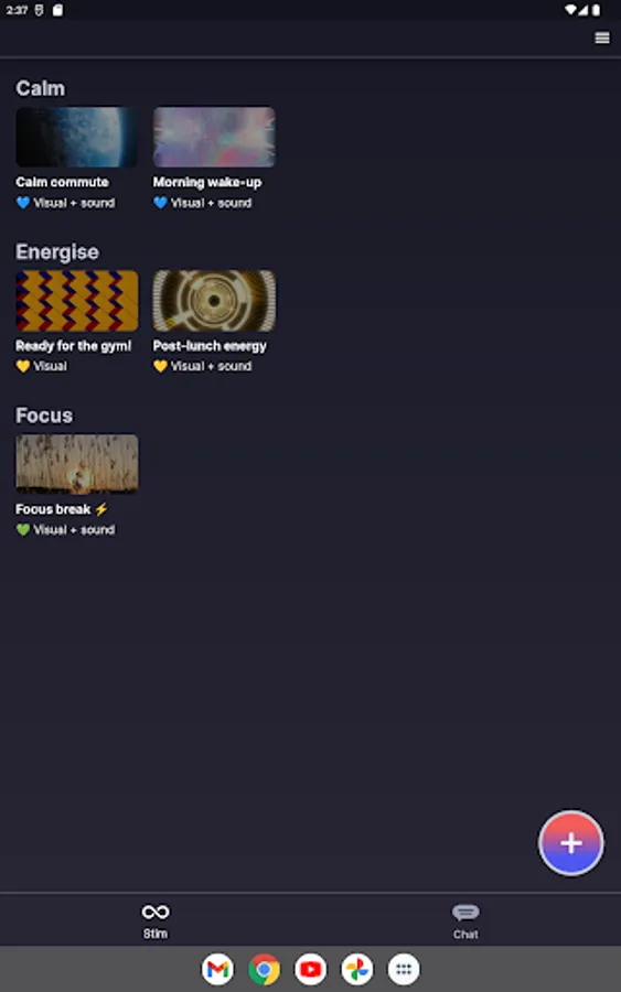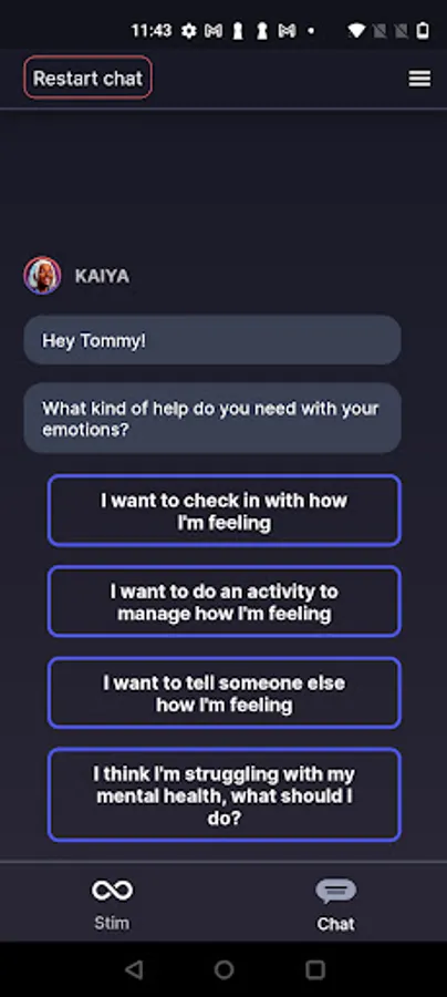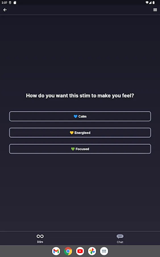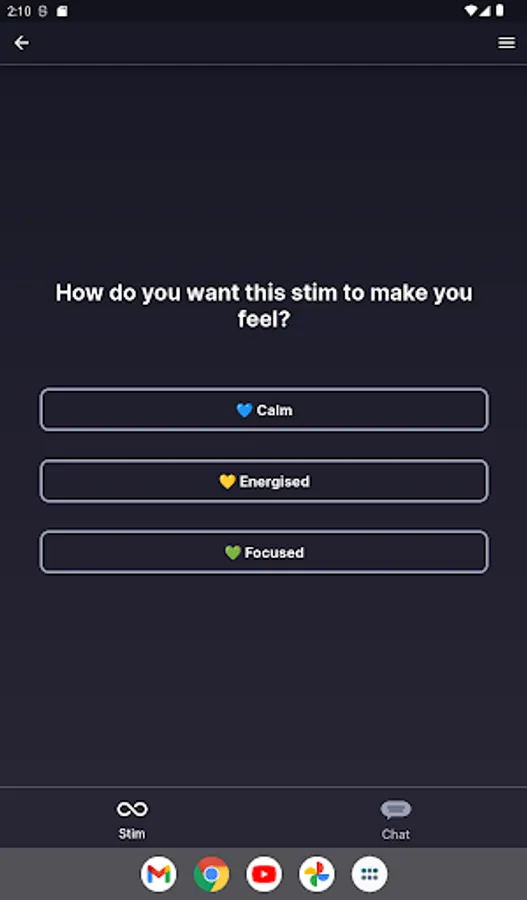 Cogs helps you to self-regulate and maintain good wellbeing practices though a combination of chat-based and stimming features.