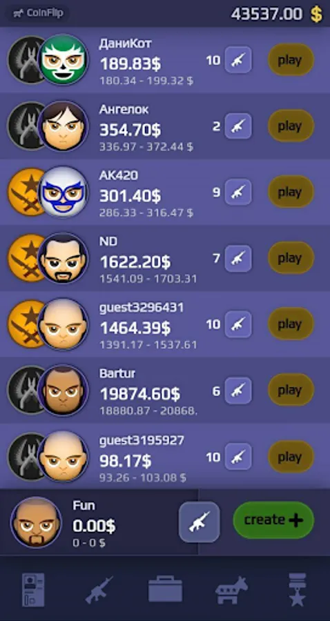 • Mini-games page - here you will find various mini-games: jackpot, coinflip, contracts and team fights.