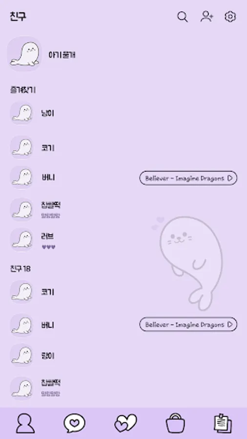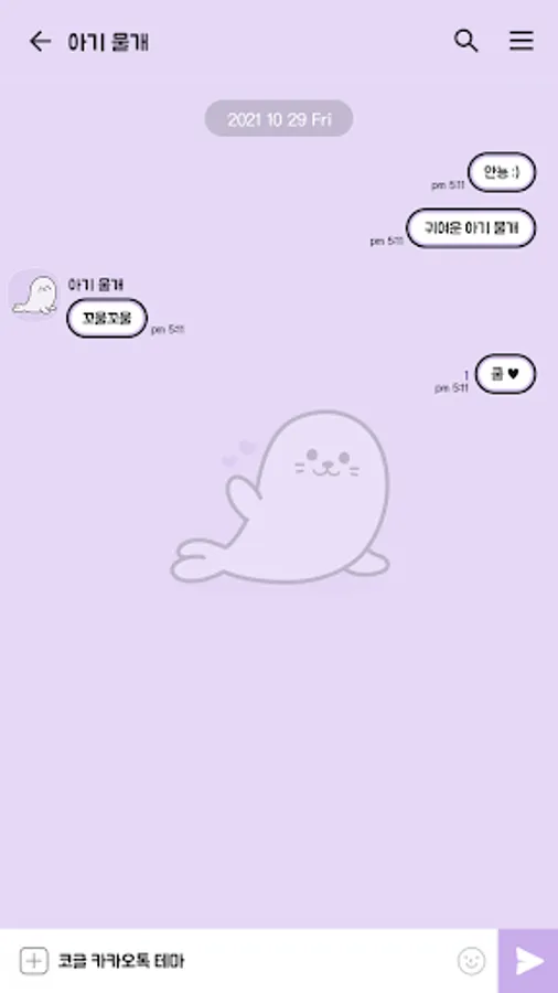 카카오톡 테마 - 아기 물개_보라 Screenshots
