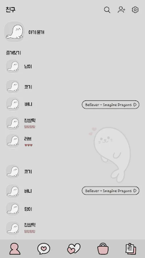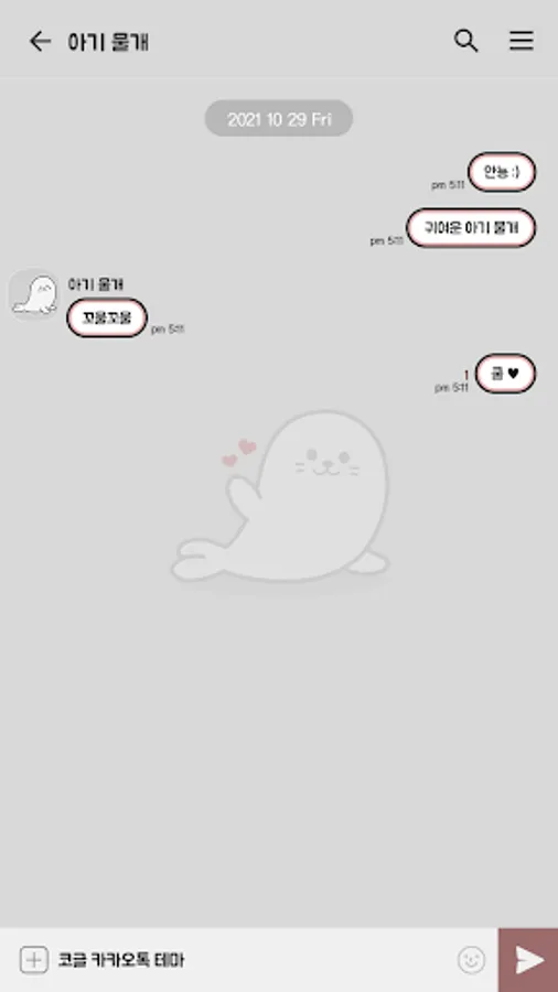 카카오톡 테마 - 아기 물개_심플 그레이 Screenshots