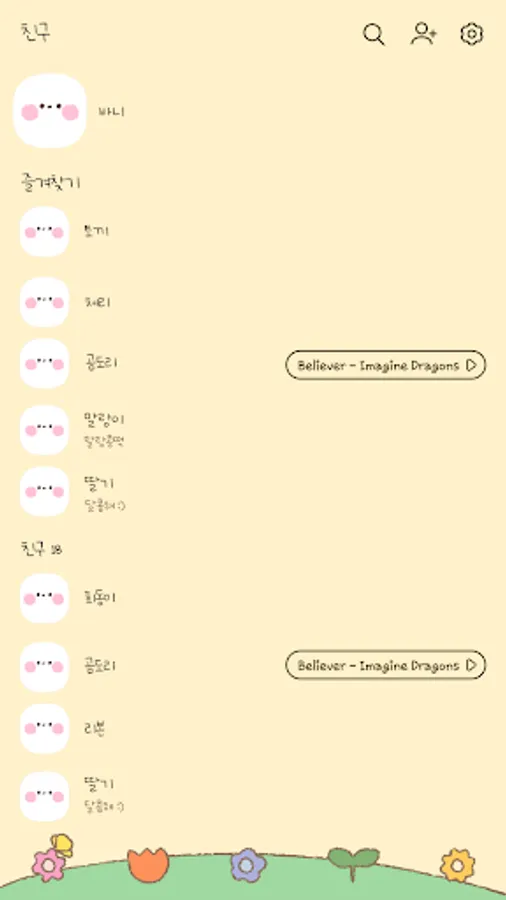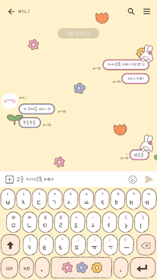 카카오톡 테마 - 꽃밭 위의 바니_옐로우 Screenshots